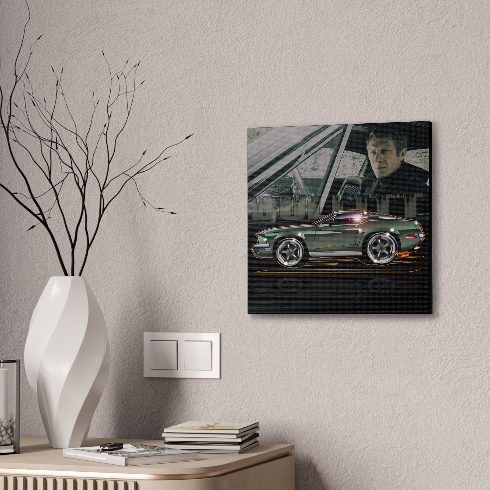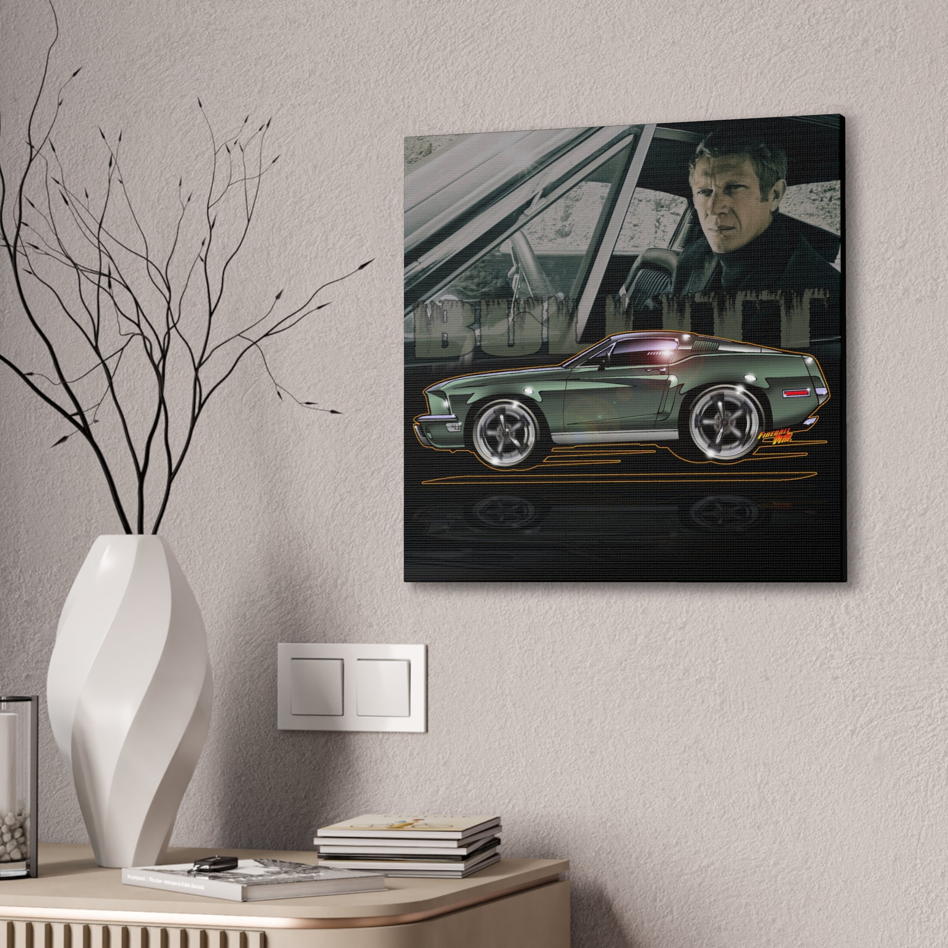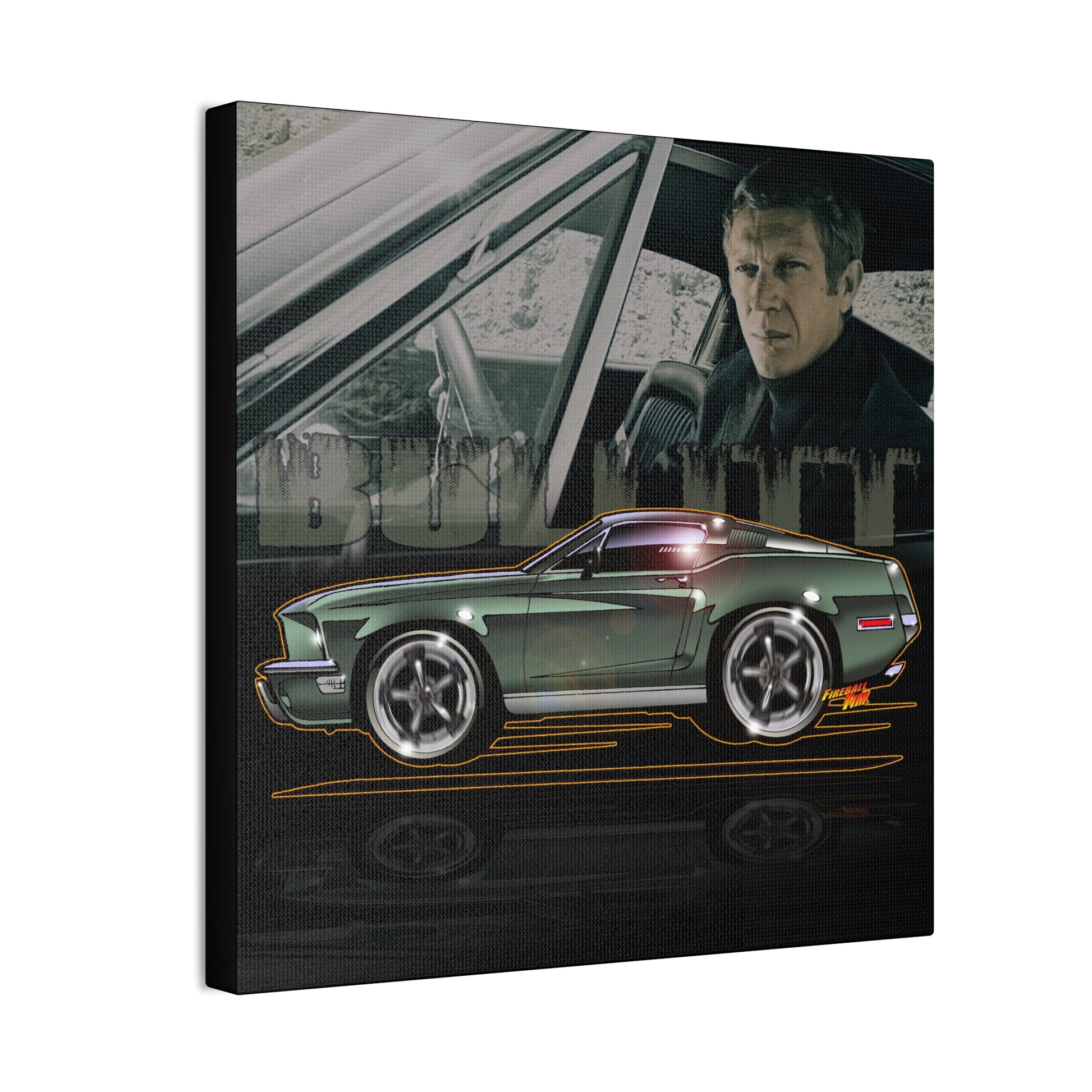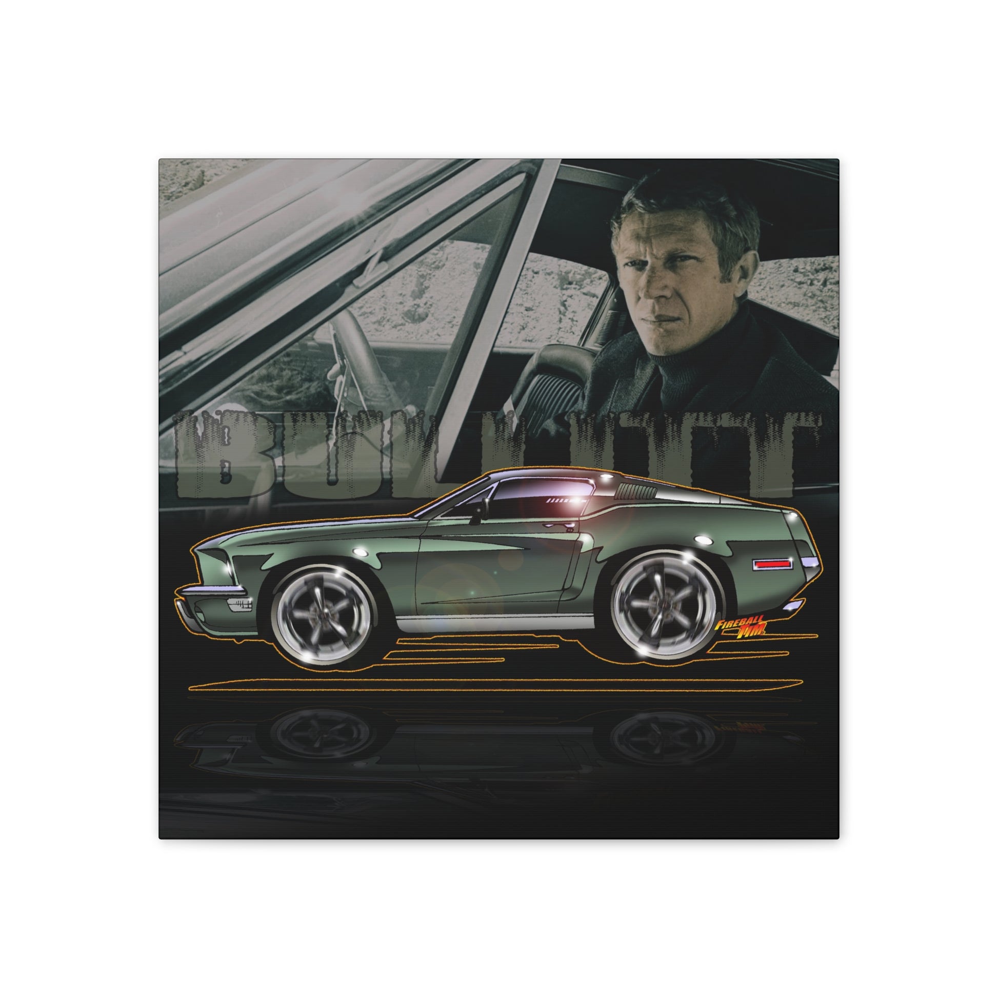 BULLITT FORD MUSTANG Steve McQueen Fireball Art Canvas Print - 3 Sizes