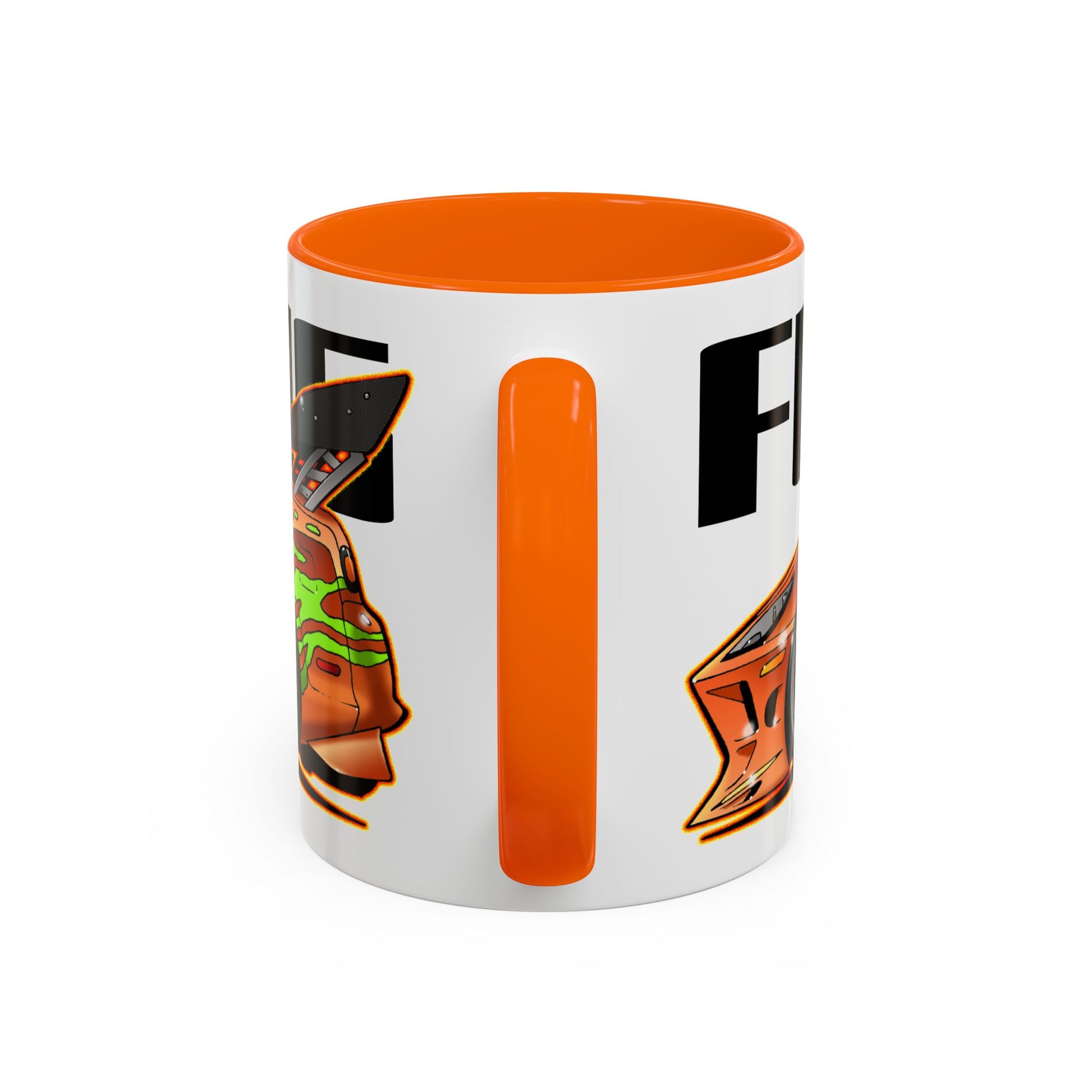 A bold, colorful ceramic mug that brings racetrack energy to your morning ritual. Bright orange interior and handle frame a high-contrast print of a stylized performance car — aggressive lines, neon-green accents, and a sleek profile that feels fast even at rest. Sip and feel the rush: this mug adds attitude to coffee breaks, work-from-home setups, and weekend garage hangs. It sits confidently on a desk or shelf, showcasing automotive flair for anyone who lives for speed, customizing, or car-culture chatter. Durable glazing keeps the colors vivid through daily use, while the comfortable C-handle fits a relaxed grip during long drives down memory lane.