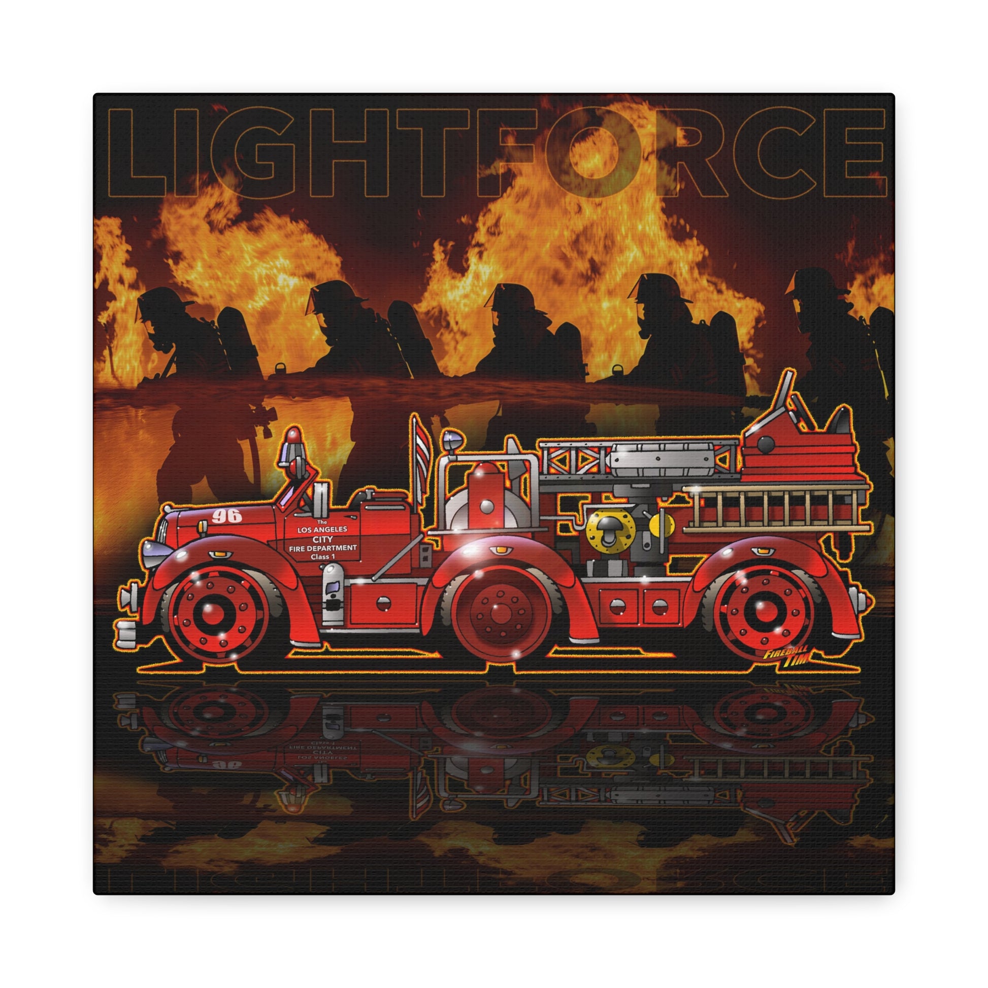 LIGHTFORCE VINTAGE 1940 AERIAL LADDER FIRE TRUCK Fireball Art Canvas Print - 12x12